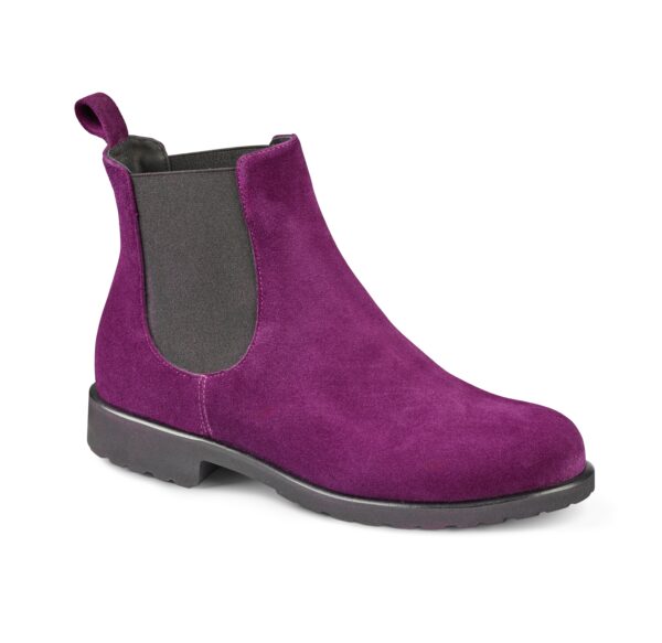 Lila mocka stövel för dam med elastisk sida och gummisula.