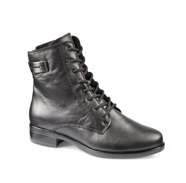 Damstövel i svart skinn med slitstark sula för komfort och hållbarhet.
