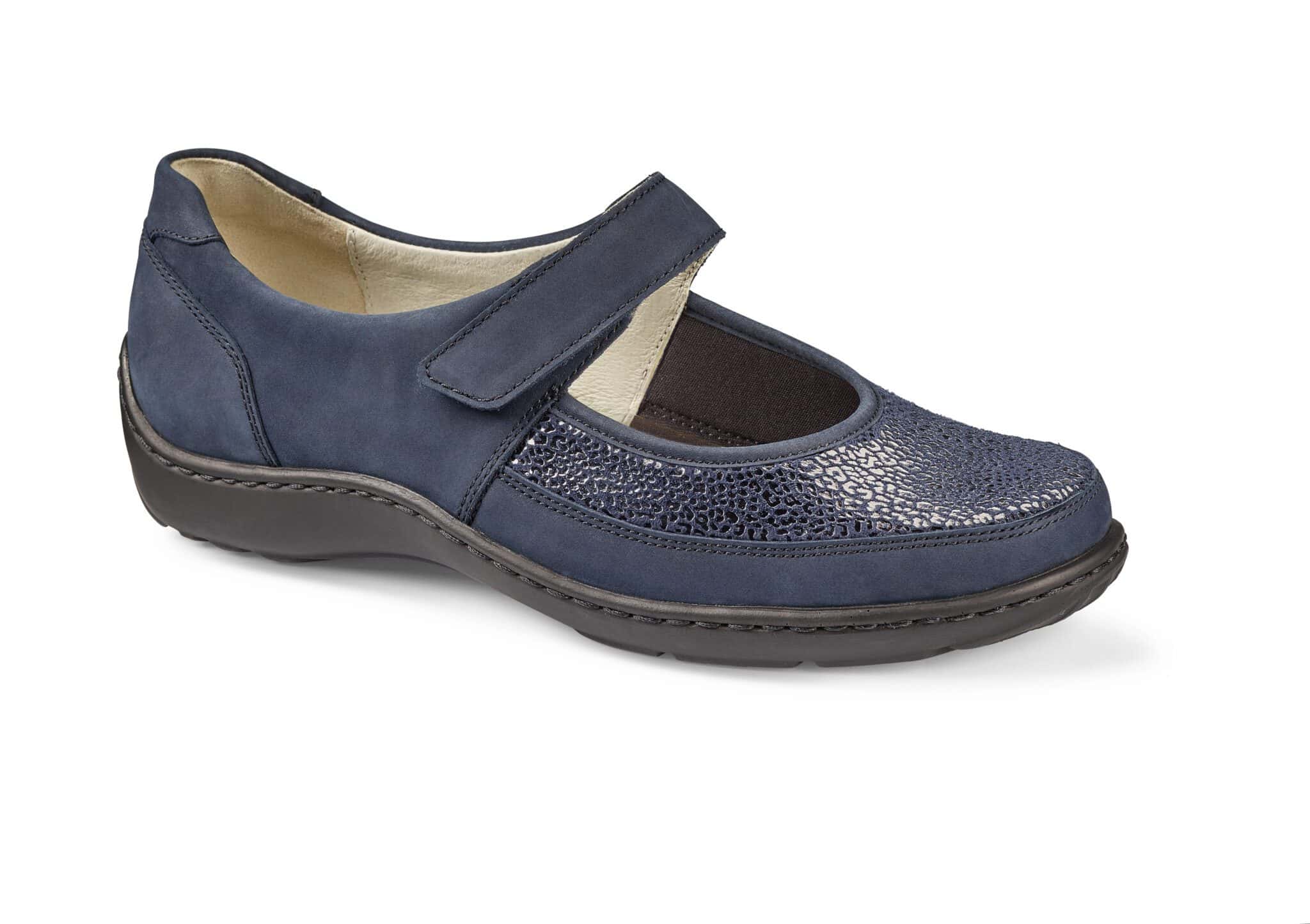En öppen slejfsko i stretchmaterial, med uttagbar innersula för dig med egna inlägg. Den mörka årstiden säljs den som innesko medan den på sommaren är ett alternativ till den klassiska loafern eller till sandalen.