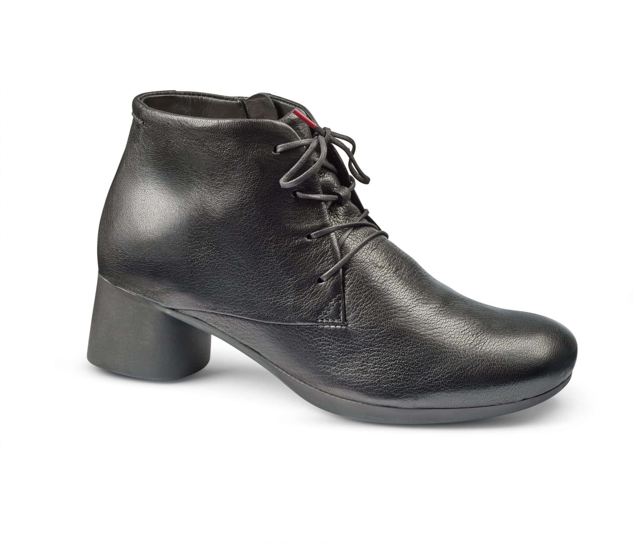 Svart skinnkänga med dragkedja och snörning. Gummisula för bra grepp. Innersulan är löstagbar för dig med egna fotbäddar. Klackhöjd 4,5 cm.