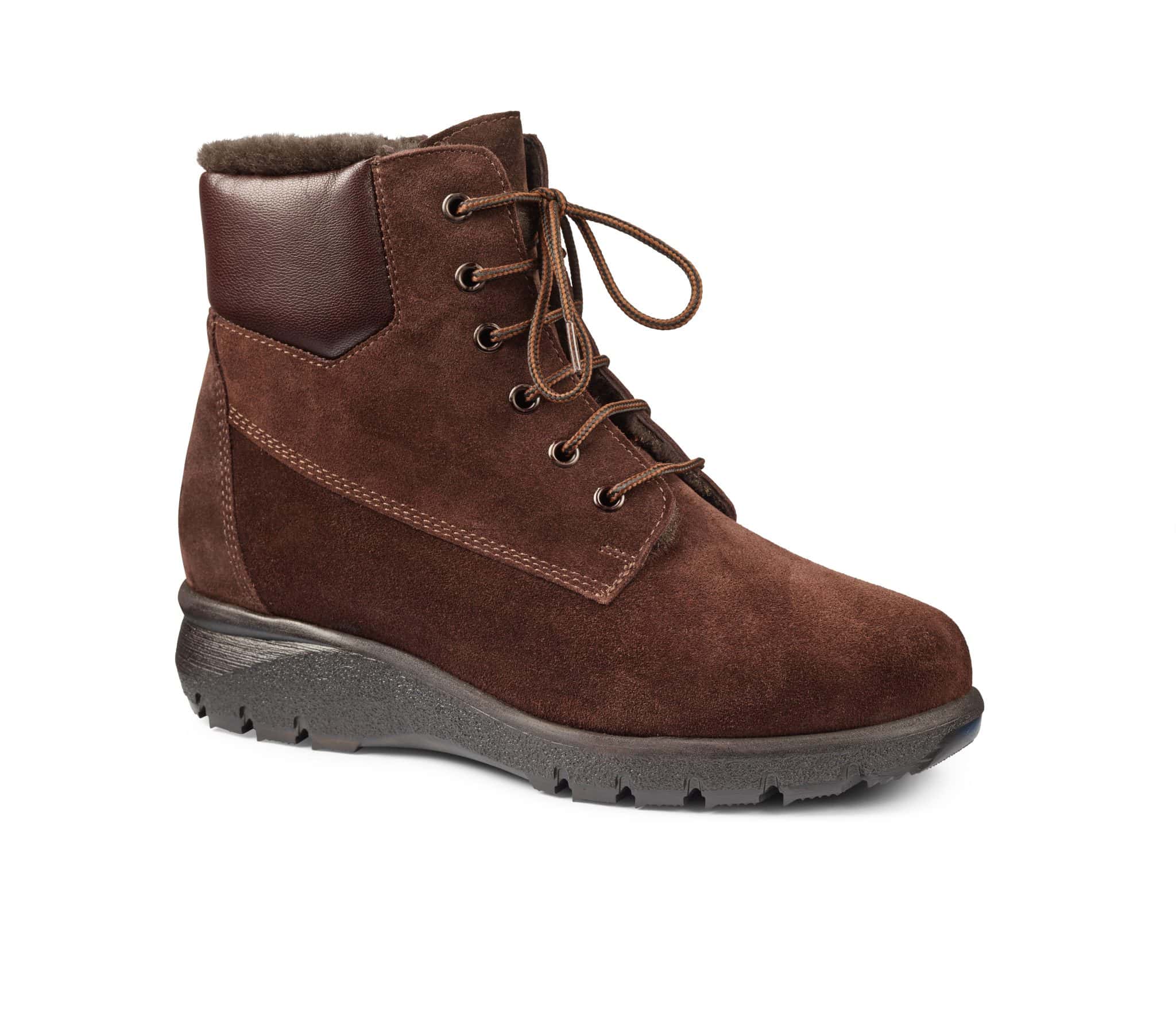 Fårskinnsfodrad vinterkänga i mocka med gummisula och löstagbar innersula för dig med egna fotbäddar. Snörning och dragkedja underlättar påtag.