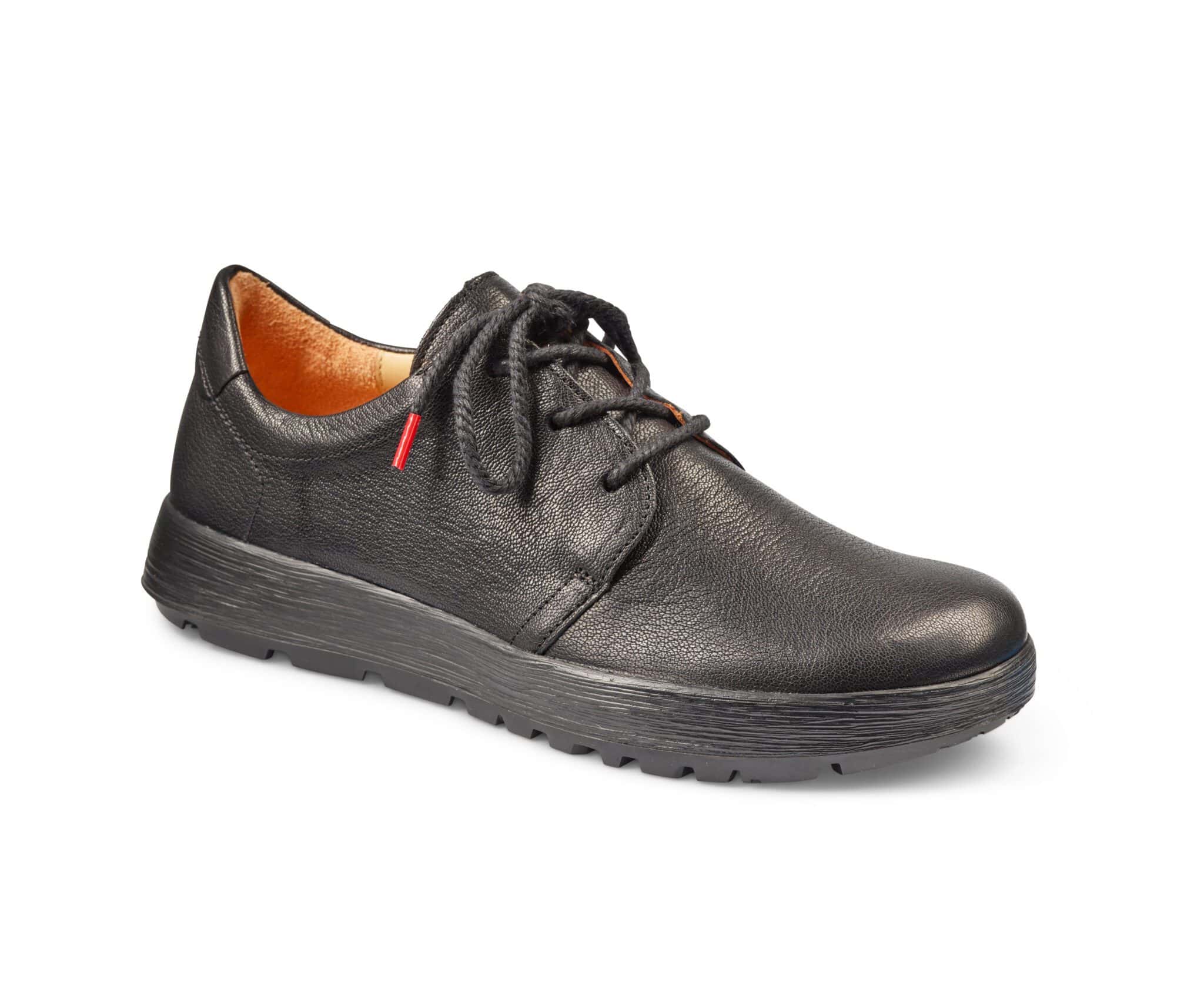 Svart promenadsko i mjukt skinn med gummisula. Uttagbar innersula för dig med egna fotbäddar.