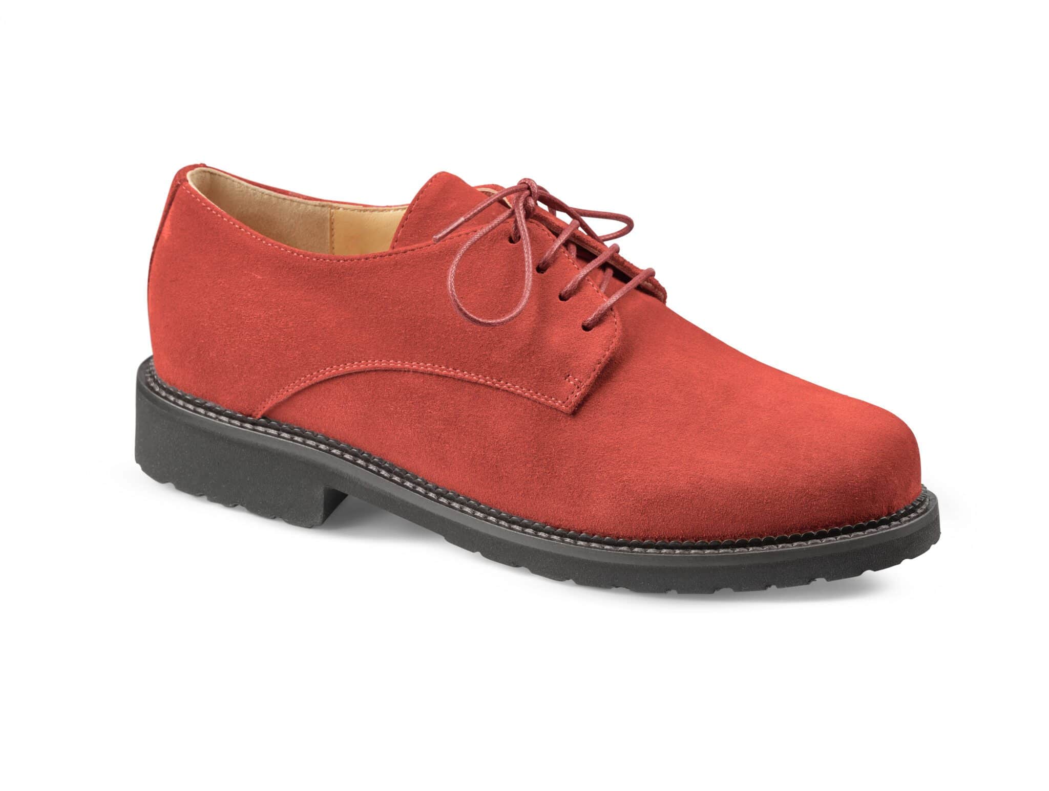 Röd skinnsko med snörning och zipp för dam, bekväm och stilren design.