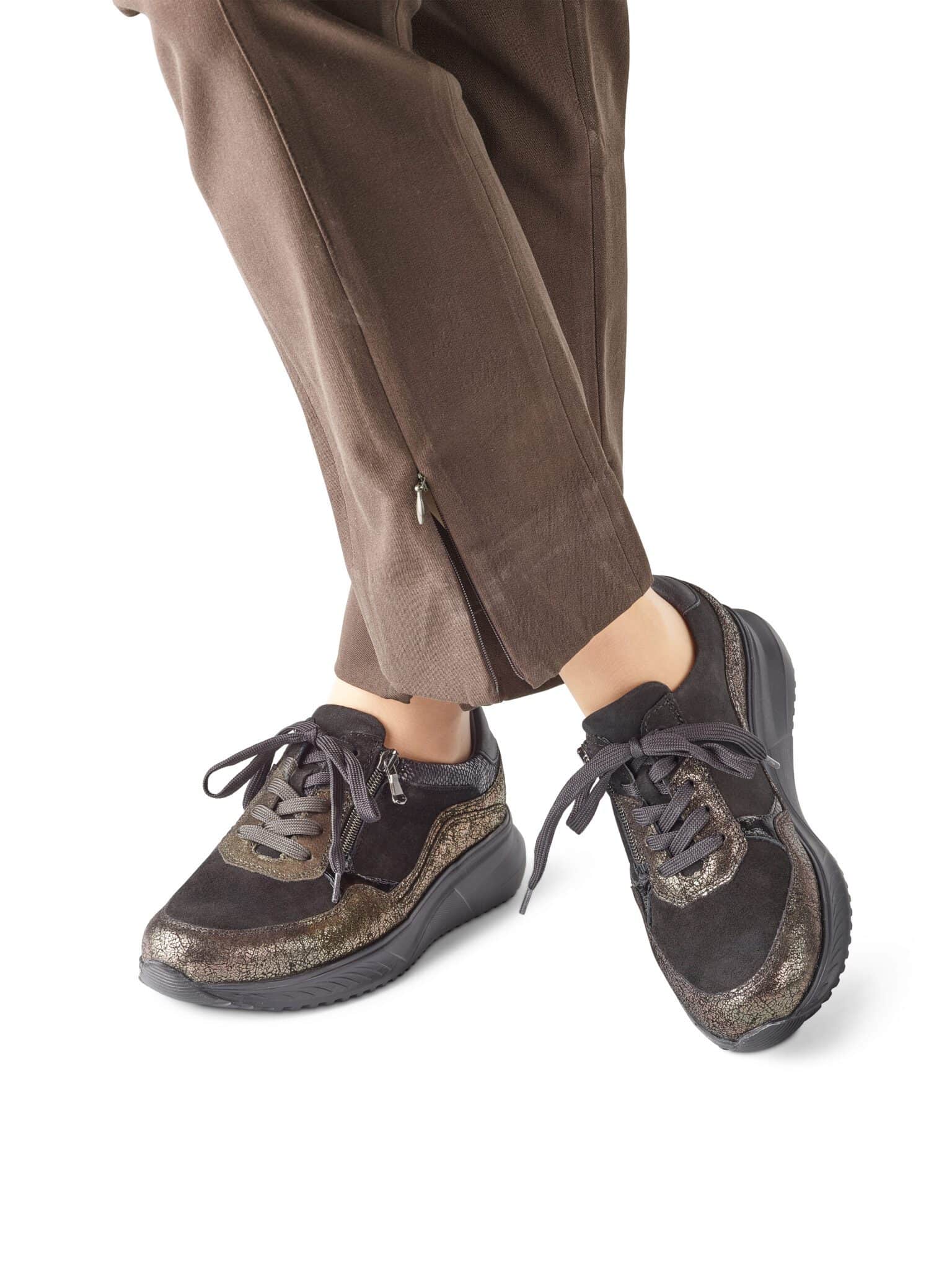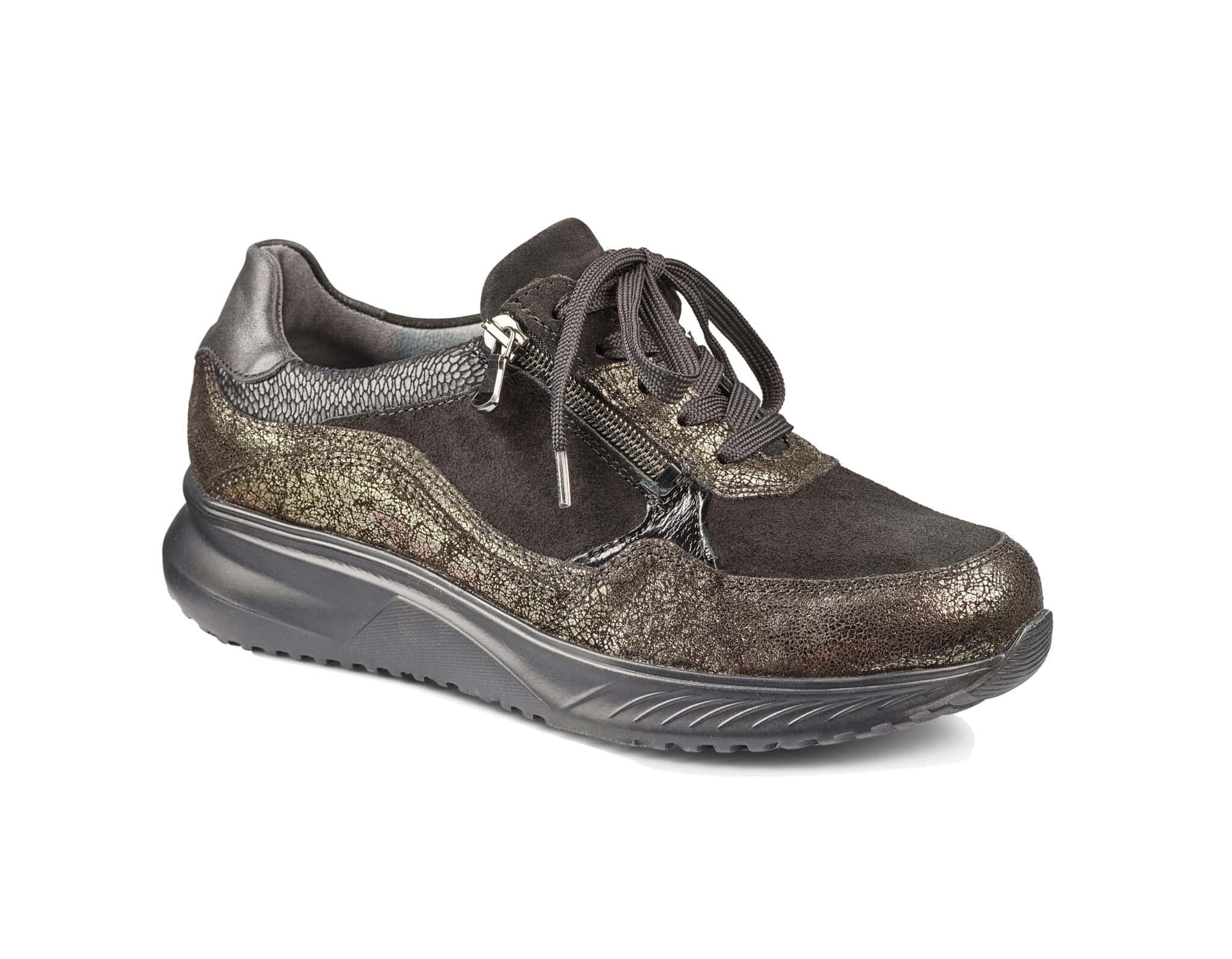 En rymlig promenadsko med snörning och dragkedja för smidig påtagning. Innersulan är utbytbar för dig med egna fotbäddar.