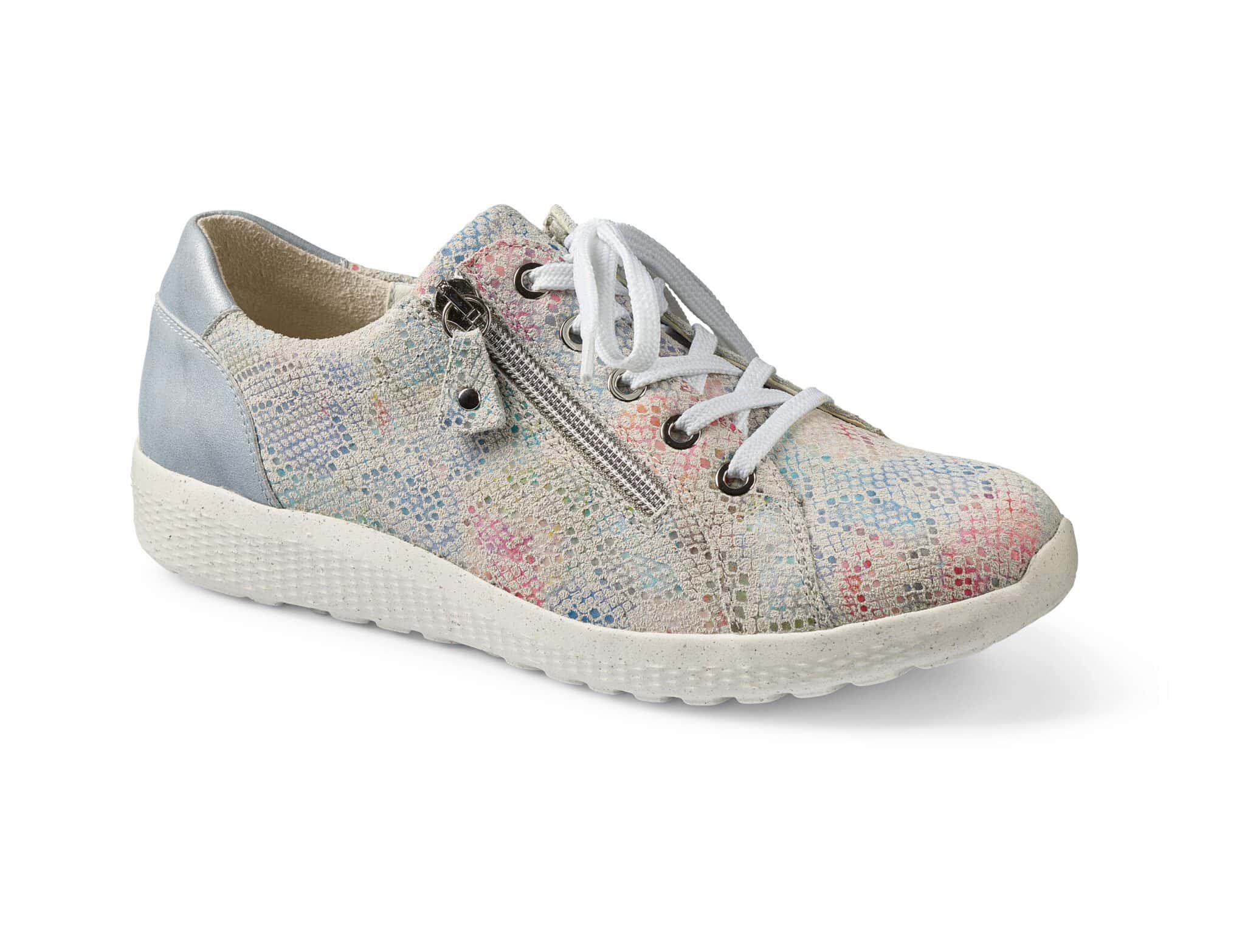 En rymlig och nätt promenadsko för våren och sommaren. Den kommer i fler färger och olika material. Dragkedja och snörning underlättar på- och avtagning. Skon har löstagbara sulor för dig med egna inlägg.